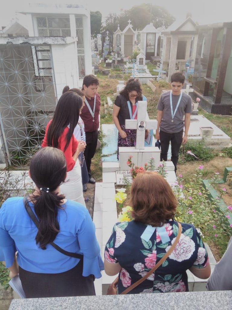 A Seção de Caridade da Congregação Mariana realizou no último domingo, 12 de agosto de 2018, dia dos pais, uma visita ao cemitério São João Batista, em cuja capela os congregados se reuniram para rezar o terço e depois para rezar pelas almas dos parentes e amigos falecidos, visitando alguns jazigos. Algumas fotos a seguir: